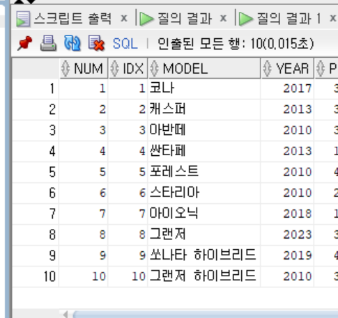 처음 작성한 sql문이다. 내가 원하는건 vehicle의 idx를 기준으로 1부터 10까지 가져오고싶었지만...