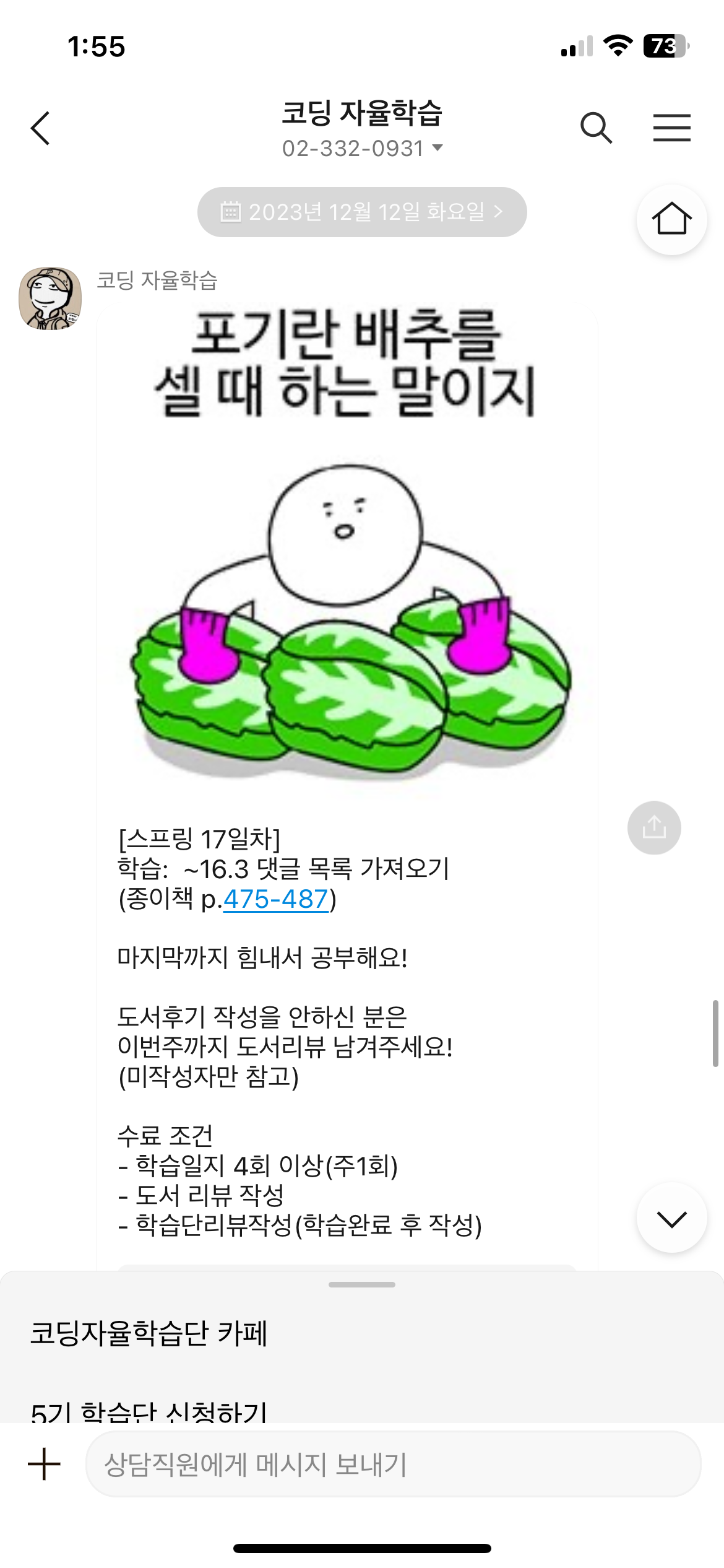 이상 코딩자율학습 스프링부트3 자율학습단 5기 후기였습니다~!!!