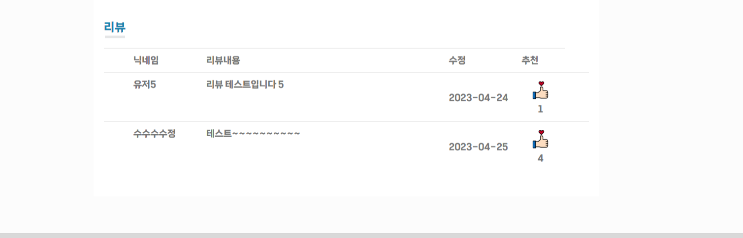 리뷰 리스트는 다른 데이터들과 함께 조회돼야 하니 전체 데이터를 조회하는 컨트롤러에서 생성했다.
